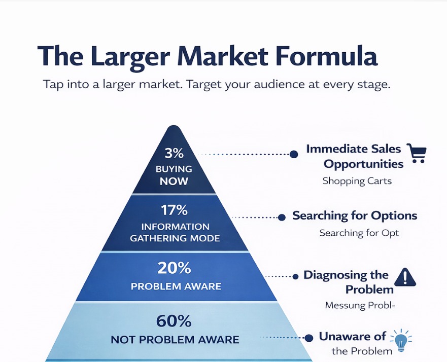 توضح لنا صورة The Larger Market Formula مفهومًا تسويقيًا عميقًا يعتمد على حقيقة مهمة. ليس كل جمهورك جاهز للشراء الآن. […]